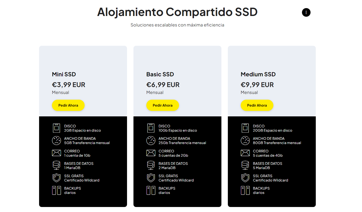- En el centro de la pantalla podrá añadir el Servició más adecuado para las necesidades de su página web dentro de la categoría seleccionada.