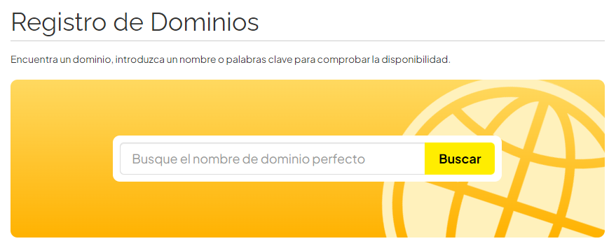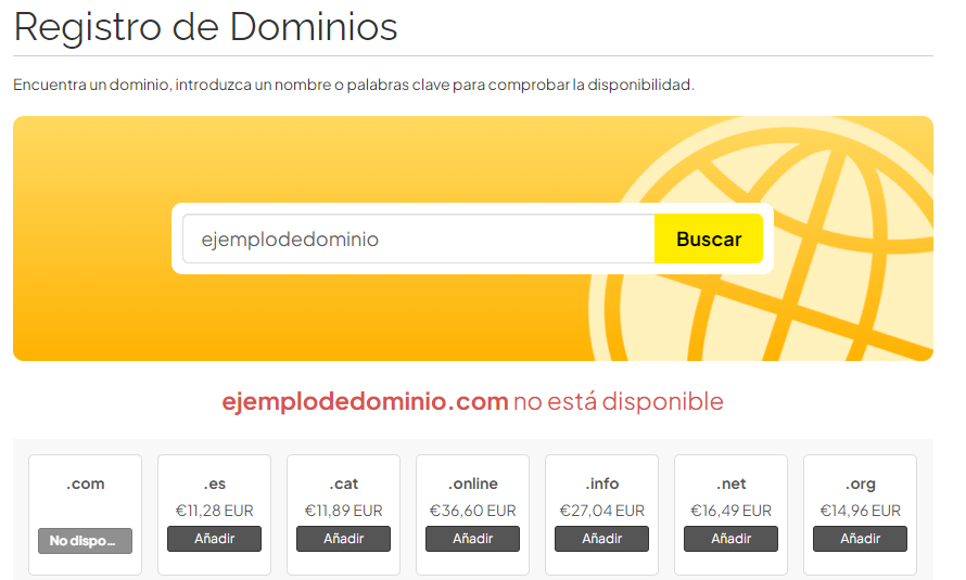 2. Introduce el dominio que quiera comprar para comprobar la disponibilidad como en el ejemplo mostrado abajo.