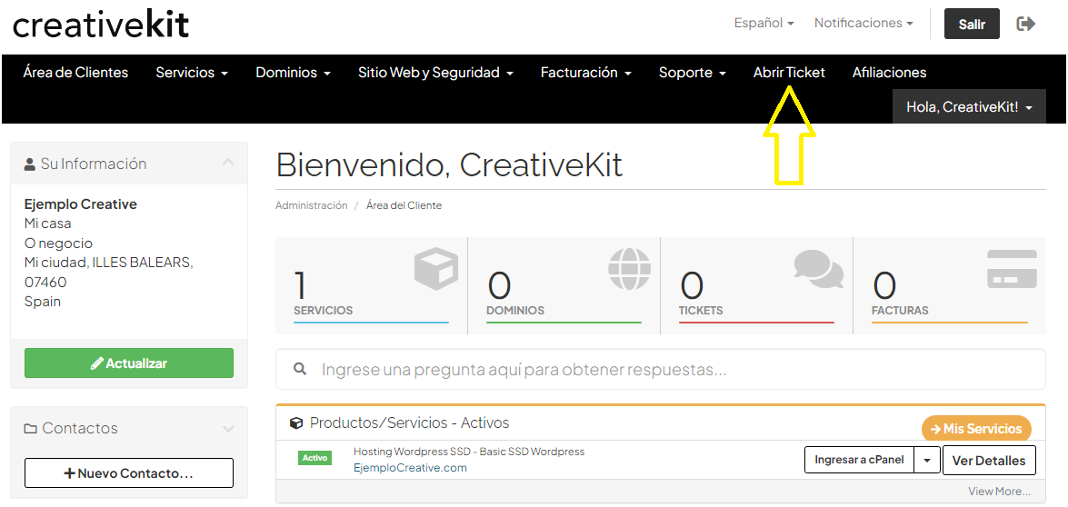 - Pulsar Abrir Ticket desde la barra superior horizontal.