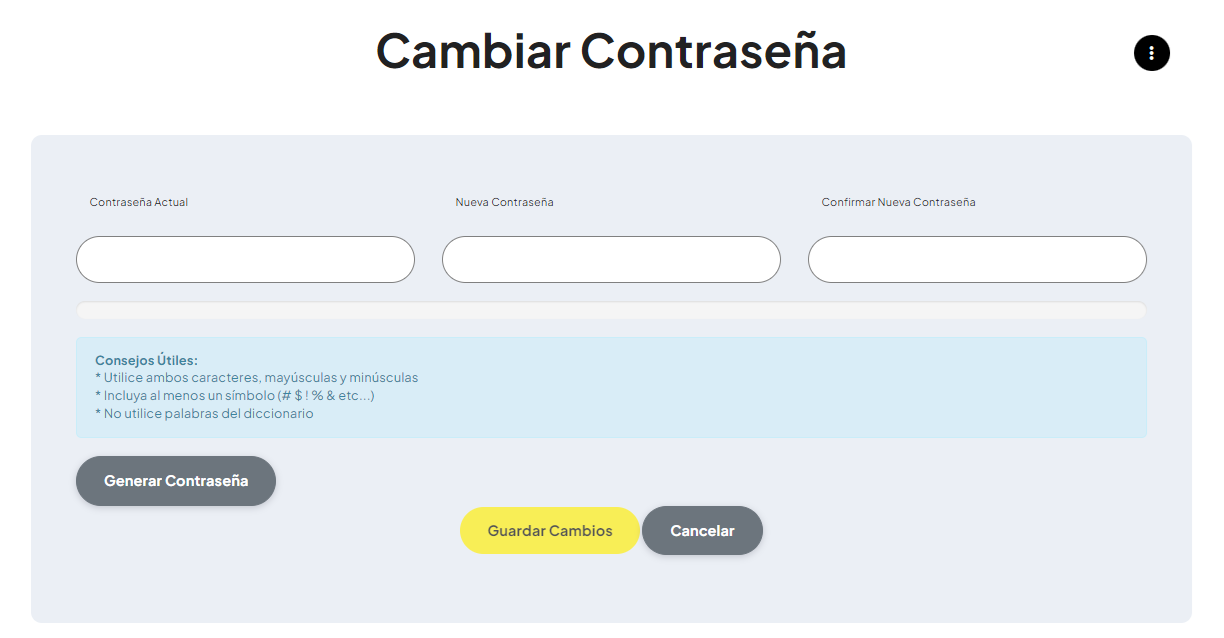 2.  Pulsar en Cambiar contraseña para acceder a la pantalla mostrada más abajo.